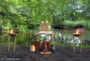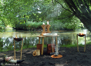Kerzen, Horn, Met, Thorshammer, Schale, Quellwasser,