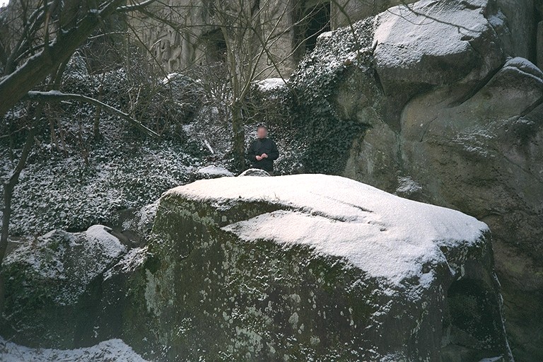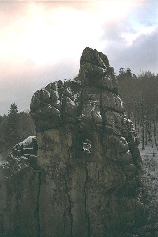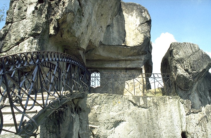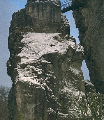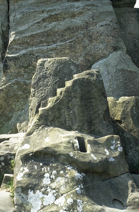Der berühmte Fels 2 von Südwesten (links) und Nordosten. War er mit der aus ihm gehauenen Höhenkammer