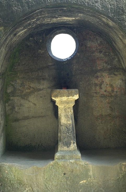 Der Altar der Höhenkammer mit dem Sonnenloch.