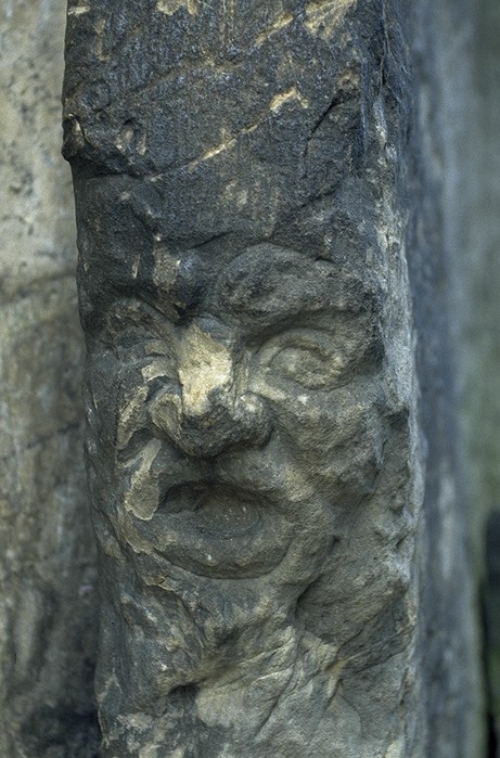 Gesicht an einem Pfeiler in der Höhenkammer.